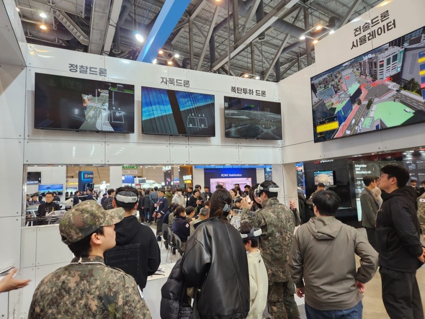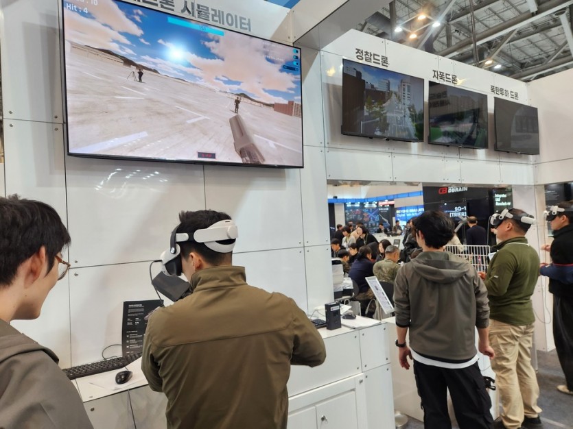 부스에서는 VR 기반 드론 시뮬레이터를 중심으로 다양한 장비와 기술을 소개했습니다. 대드론 시뮬레이터와 전술 드론 시뮬레이터를 비롯해 정찰 드론, 자폭 드론, 폭탄 투하 드론 등 여러 드론 시스템을 설명하고 관람객들이 직접 체험할 수 있도록 운영되었습니다.